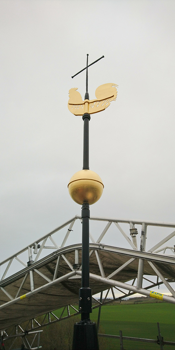 Restaureringen af tårn og tag på Viby Kirke på Nordøstfyn nærmer sig sin afslutning, og på en regngrå novemberdag blev der – i bogstaveligste forstand – sat prik over i’et på kirketårnet …
